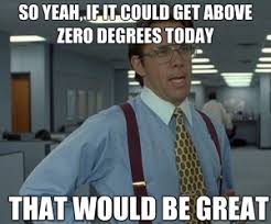It's gotta warm up soon! Almost a full week down on the health challenge! It sounds like everyone is holding up really well, but it isn't too late to ask one of us if you have any questions! Some people have had trouble with the amount of calories that the formula gave them, but you can change any of the numbers to suit your needs. Everyone's body and everyone's goals are different! Keep up the great work guys!
